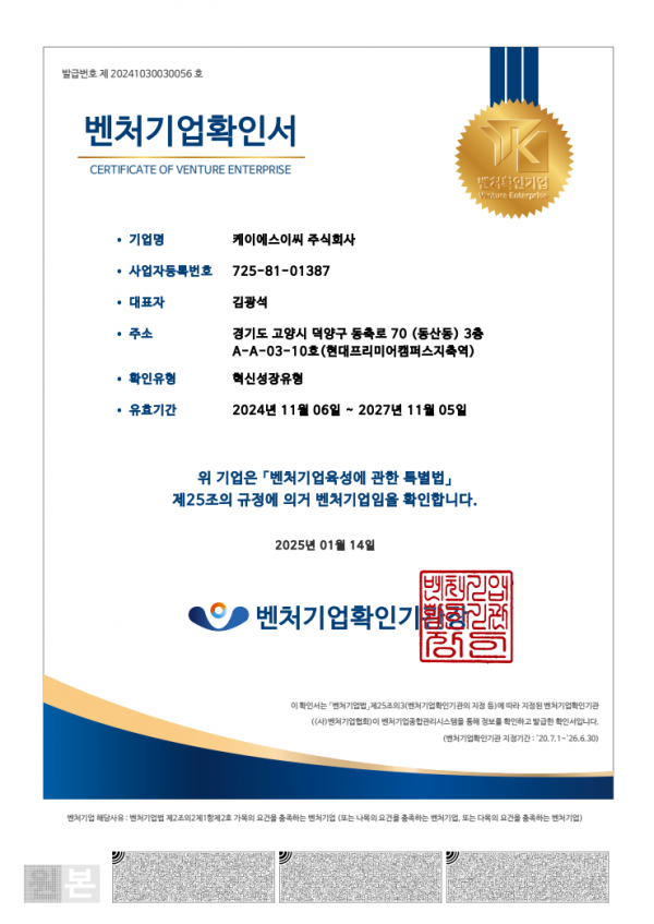 1. 명 칭 : 벤처기업확인서