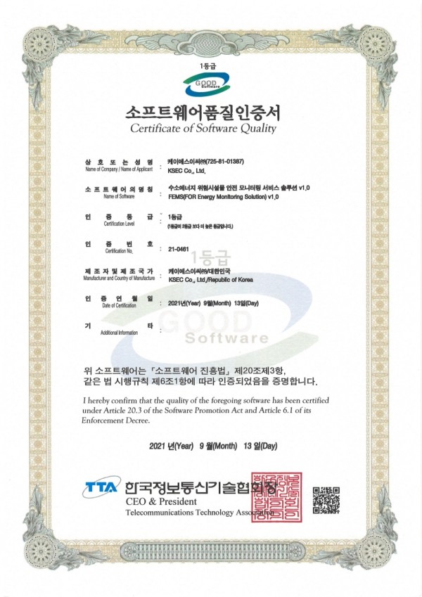 수소에너지 위험시설물 안전 모니터링 서비스 솔루션 GS인증