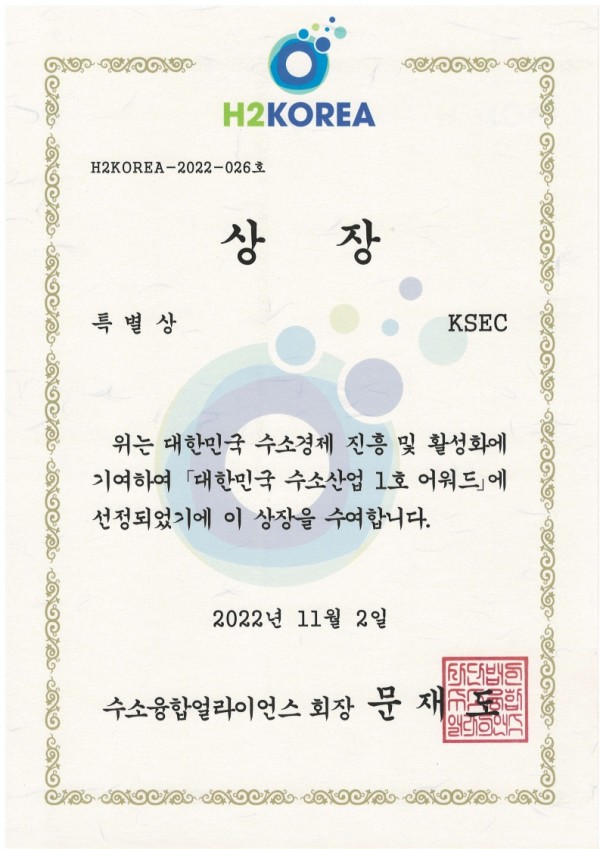 국내 최초 수소충전소 안전 모니터링 부문 수소 산업 1호 어워드 선정