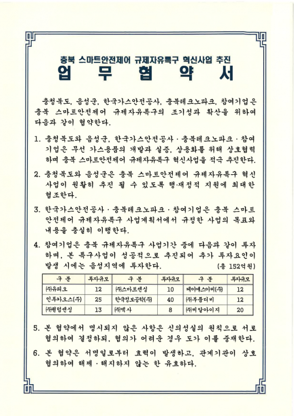 충북 규제자유특구 혁신 사업(R&D) 협약(충청북도, 한국가스안전공사)