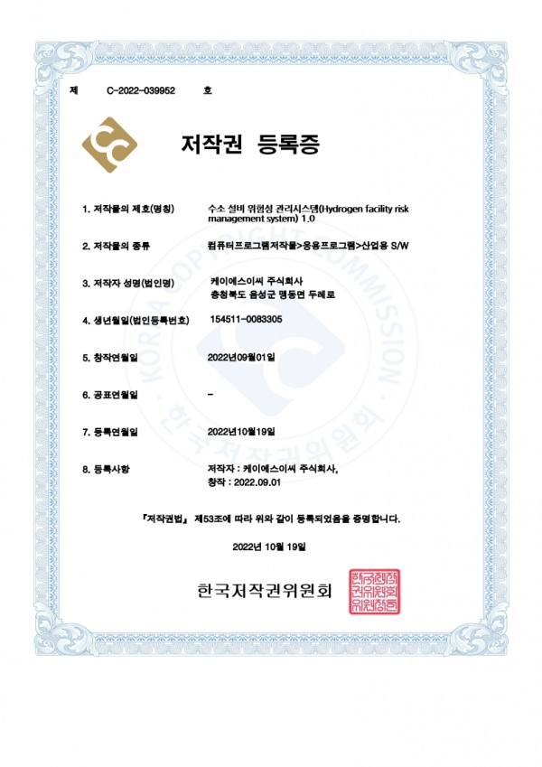 1. 명 칭 : 수소 설비 위험성 관리시스템(Hydrogen facility risk management system) 1.0
